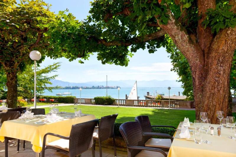 Vor der beeindruckenden Kulisse des Bodensees und der Alpen begrüßt Sie das traditionsreiche Hotel Bad Schachen mit stilvollen Zimmern und einem großzügigen 1.000 m² Wellnessbereich. Während der über 100 Jahre alte Radschaufeldampfer Hohentwiel gemächlich vorbeizieht, laden Innen- und Außenpool zum Entspannen und Genießen ein – ein unvergesslicher Aufenthalt in Lindau, Deutschland.