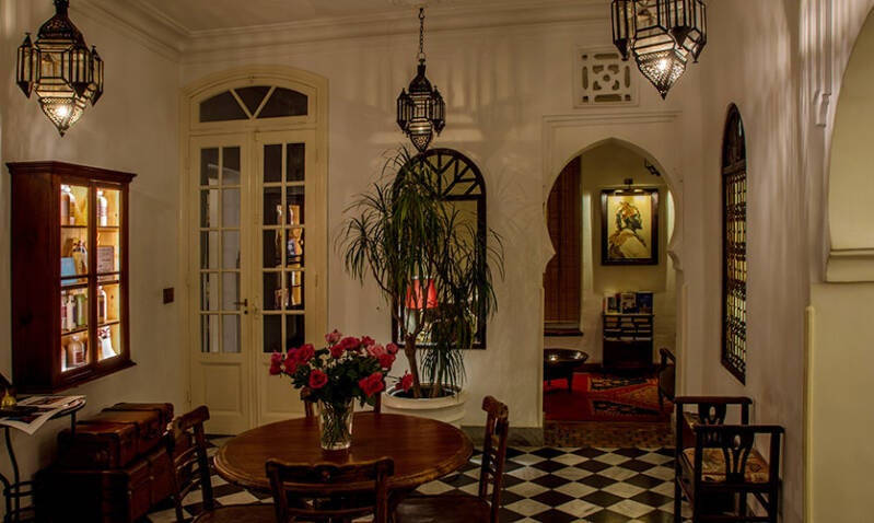 Das Hotel liegt im Herzen der Medina, der Altstadt von Tanger, und einige Zimmer bieten einen beeindruckenden Blick auf den Hafen.